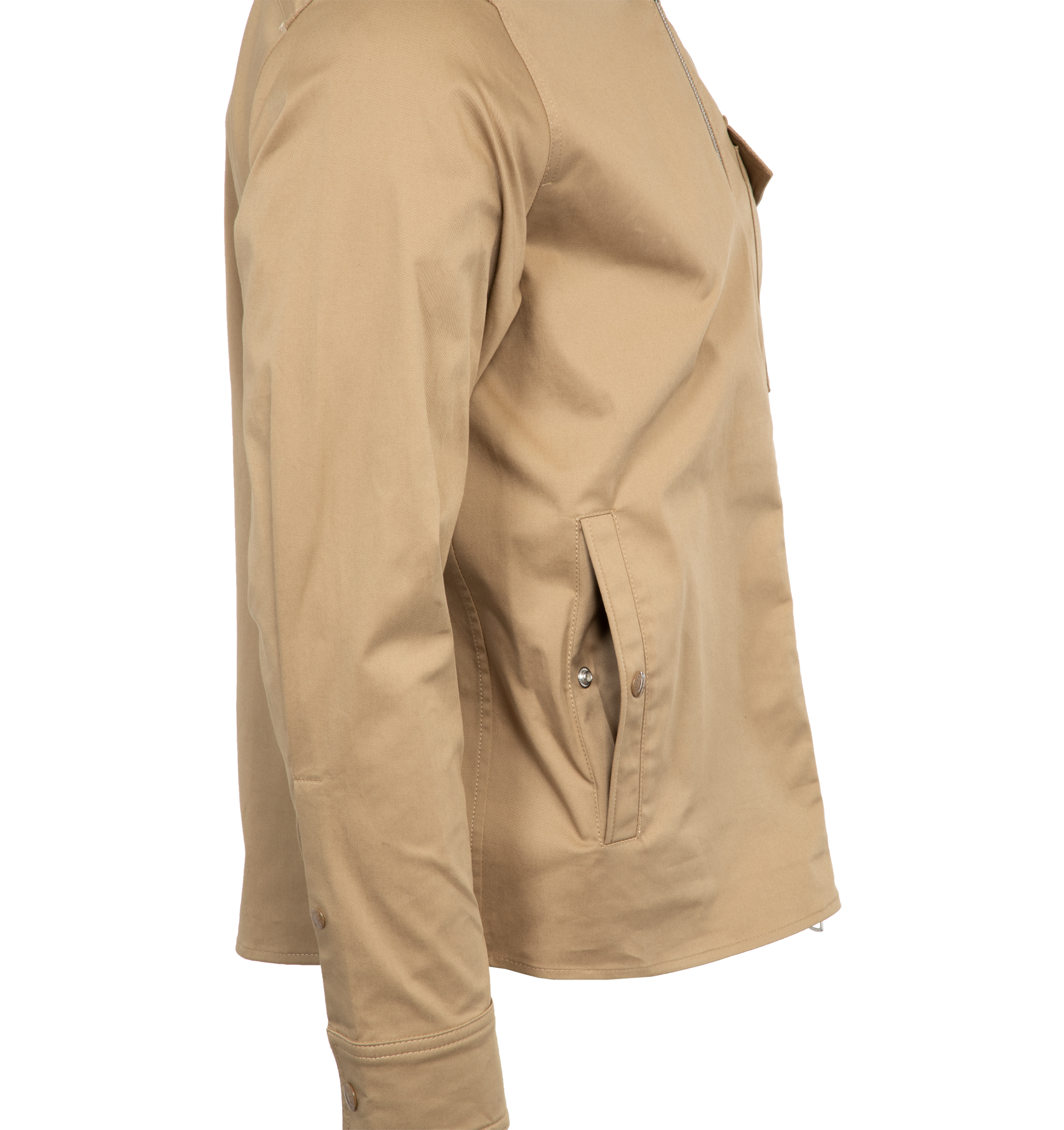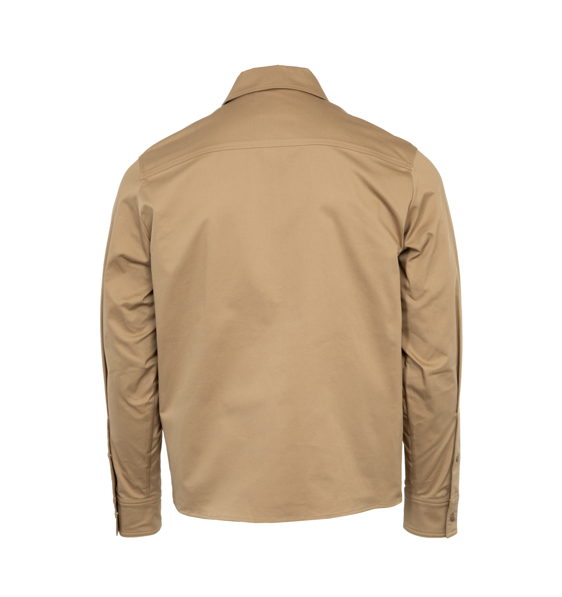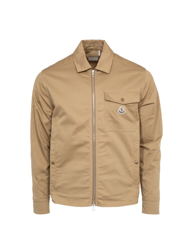 MONCLER Zip Up Work Shirt featuring long sleeves, zip up front closure, collar, snap closure side pockets, snap closure chest flap pocket and logo.